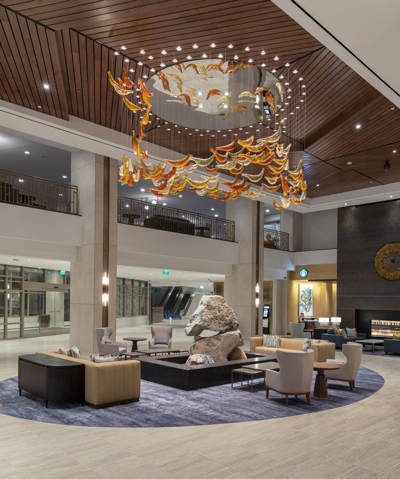Nestled within the Smoky Mountains of North Carolina, the Harrah’s Cherokee Casino Resort expansion project included adding to the resort’s five-story convention center and the construction of a new 20-story hotel tower. The hotel connects to a parking garage through an enclosed pedestrian bridge on the second floor. Amenities within the expansion include: