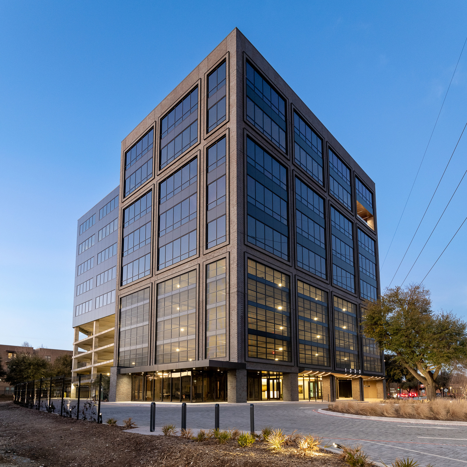 This project is a 122,700 SF, 10-story mixed-use office building located in Dallas, Texas. The building contains five levels of Class A office space and a four-level parking garage. Inside the building are several amenities, including: