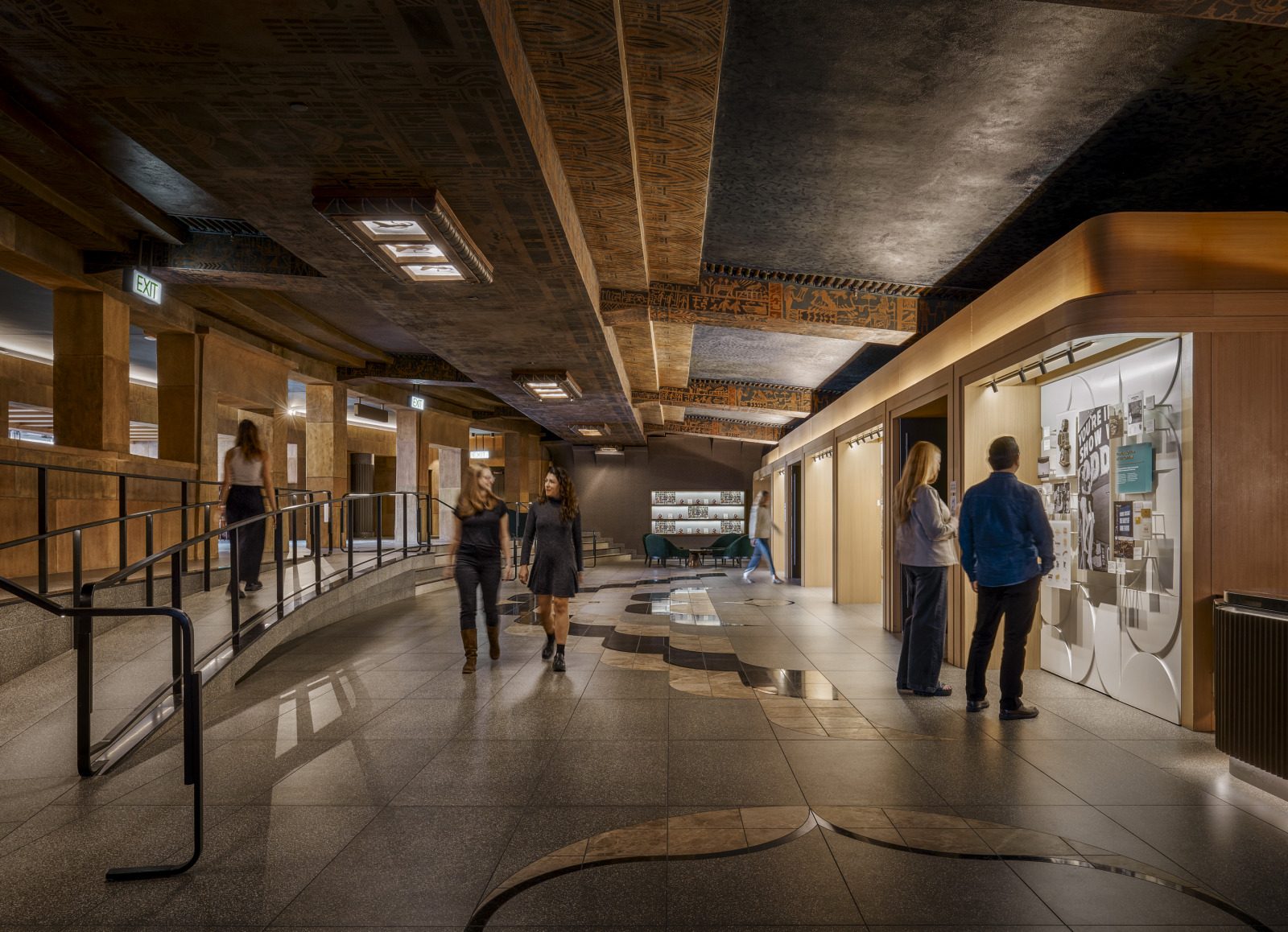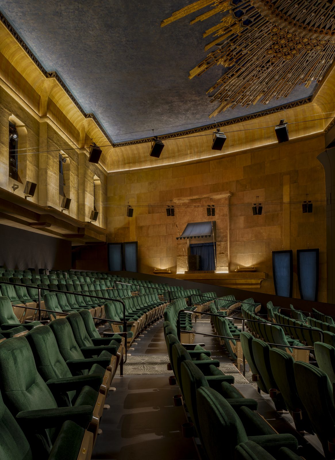 The Egyptian Theatre restoration project upgraded the historic 1920s venue, home to the first Hollywood movie premiere, into a venue for Netflix film screenings. To restore the theatre’s historic character, the renovation preserved the original façades and exterior features of the buildings. The 1997 interior modifications such as a screening room, reversible seats, a balcony and an acoustic system were removed. The main theatre renovation added 516 seats and six wheelchair spaces with a riser system, projector and sound system. Additional amenities within the venue include: